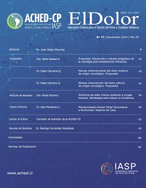 En estas páginas, presentamos dimensiones terapéuticas diferentes para nuestros lectores, la amplia gama de profesionales que manejan dolor y cuidados paliativos y que tienen en ACHED-CP un referente para promover la investigación y la difusión del conocimiento.